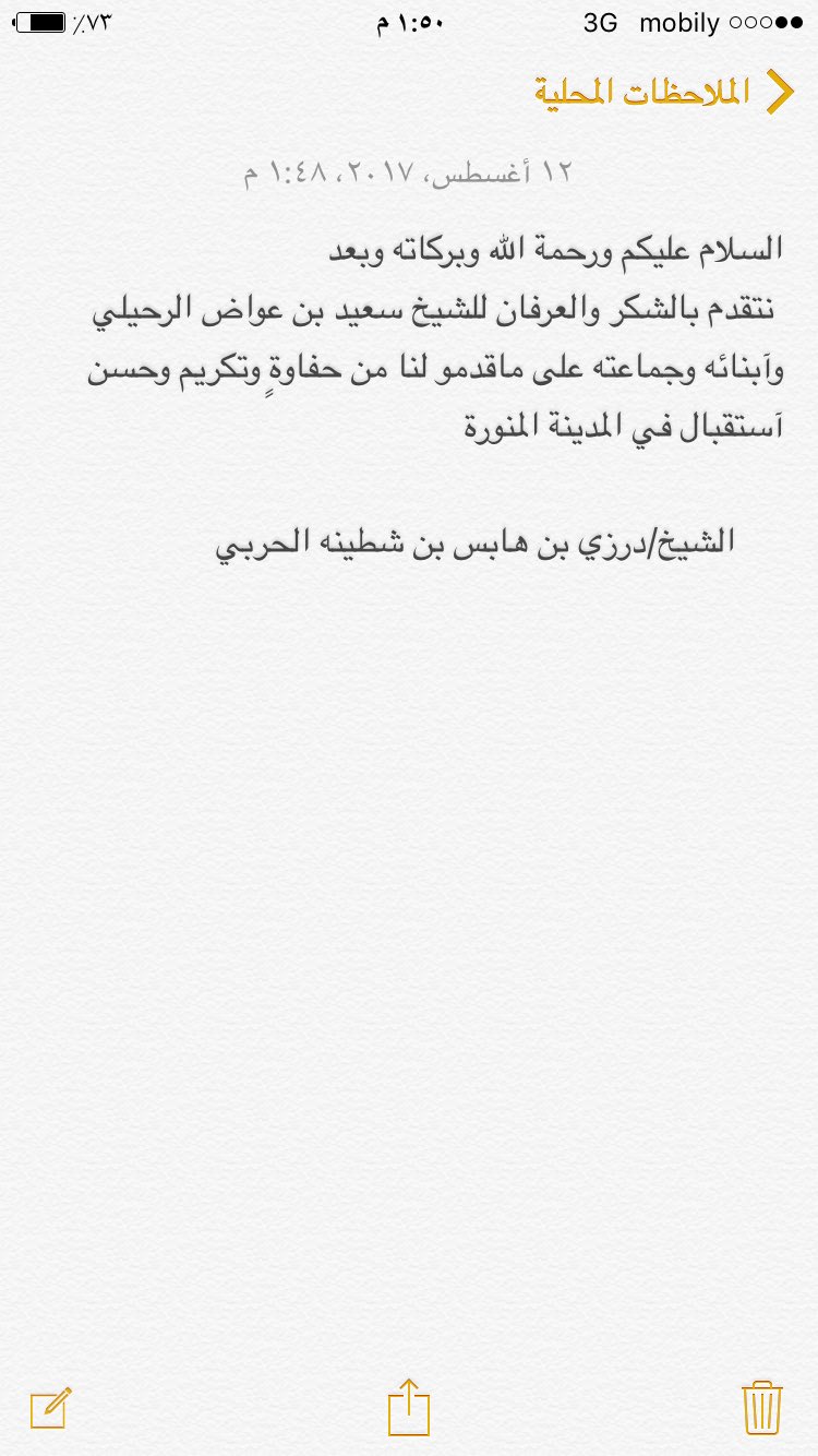 فهد بن درزي بن شطينه On Twitter السلام عليكم ورحمة الله وبركاته وبعد نتقدم بالشكر والعرفان للشيخ سعيد بن عواض الرحيلي وآبنائه وجماعته على ماقدمو