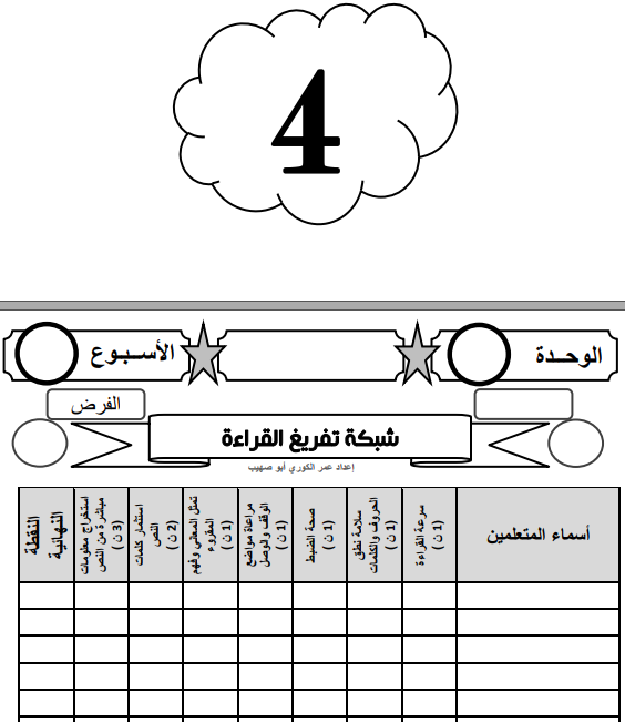 شبكات تفريغ تقييم مكونات اللغة العربية أسبوع التقويم والدعم الثالث والرابع
