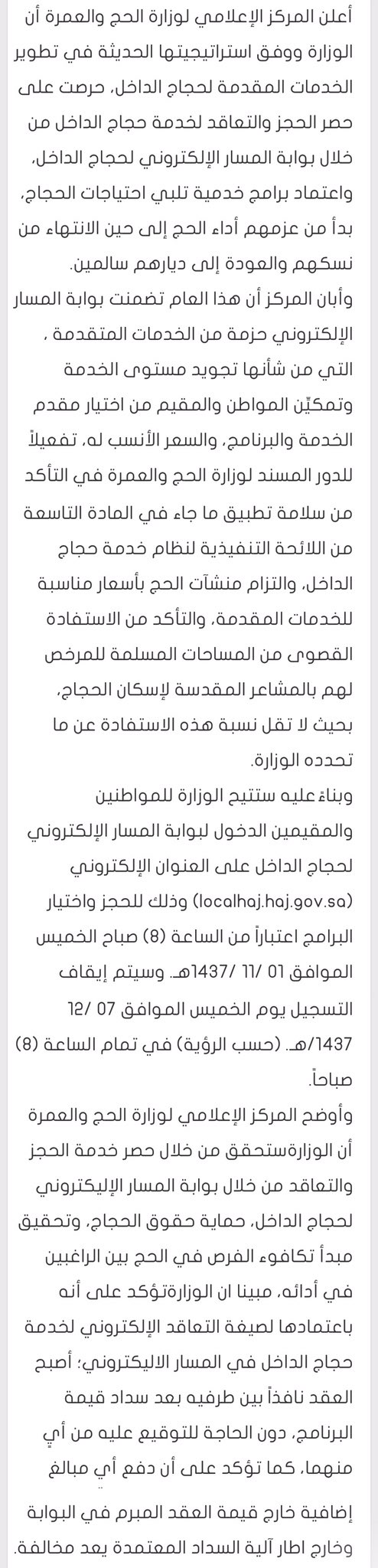 هاشتاق السعودية A Twitter الحج والعمرة تفتح التسجيل في المسار الإلكتروني لحجاج الداخل غرة ذي القعدة