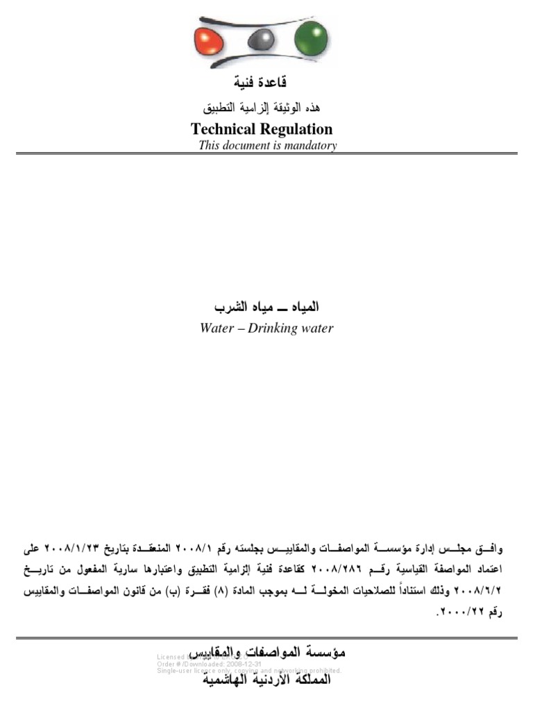 المواصفات والمقاييس للمياه بالأردن Business Nature